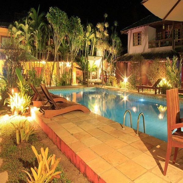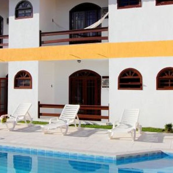 Sobre o Hotel: Estilo rústico, apartamentos completos, duplos á quádruplos, ar condicinonado, frigobar, café da manhã, agradável sossego, cercado de jardins tropicáis, piscina, bar com um confortável deck de madeira.